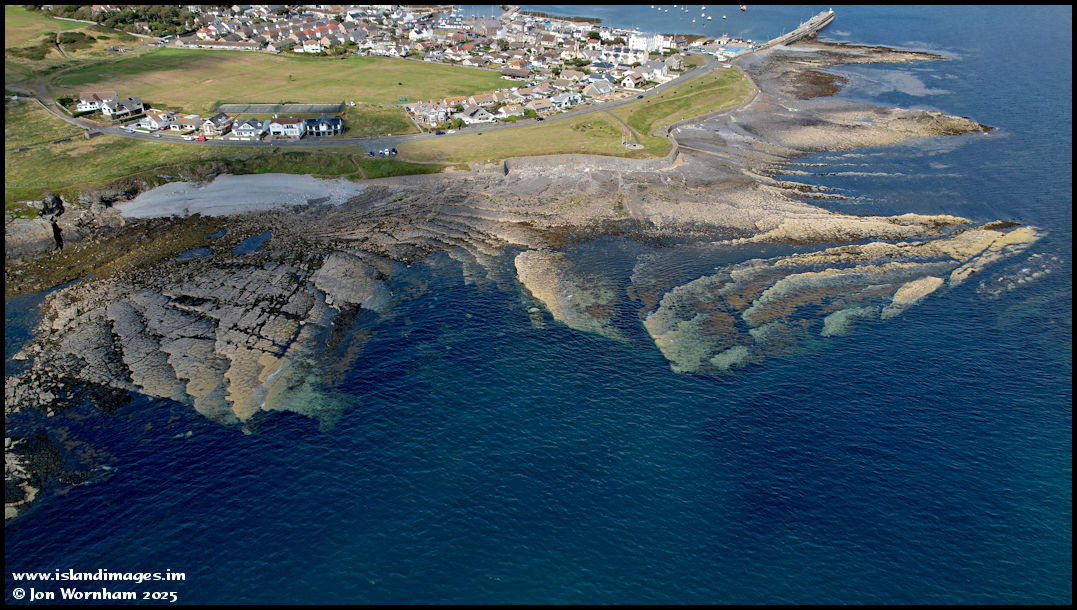 Kallow Point with its huge shelves of limestone partially uncovered by a low tide.