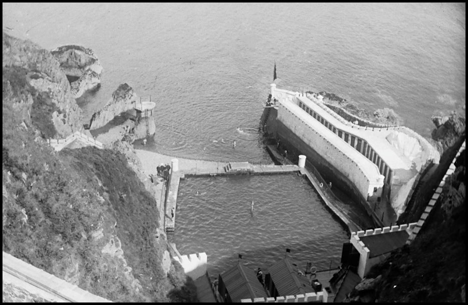 Port Skillion Swimming Pool. from a rather faded iMusum picture, with a bit of restoration by me. The original photographer was William Cavenagh. Looks like there's a high diving platform just outside the pool area.