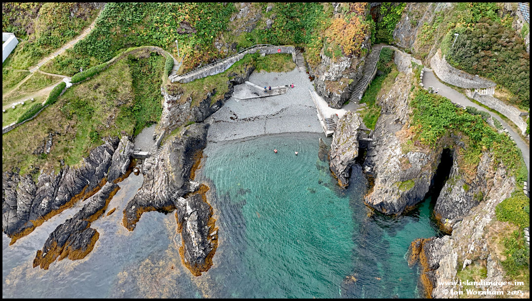 Port Skillion. At one time one of the island's severla sea water bathing pools and still popular today with sea swimmers. Click the image for an old iMuseum photo of the swimming pool.