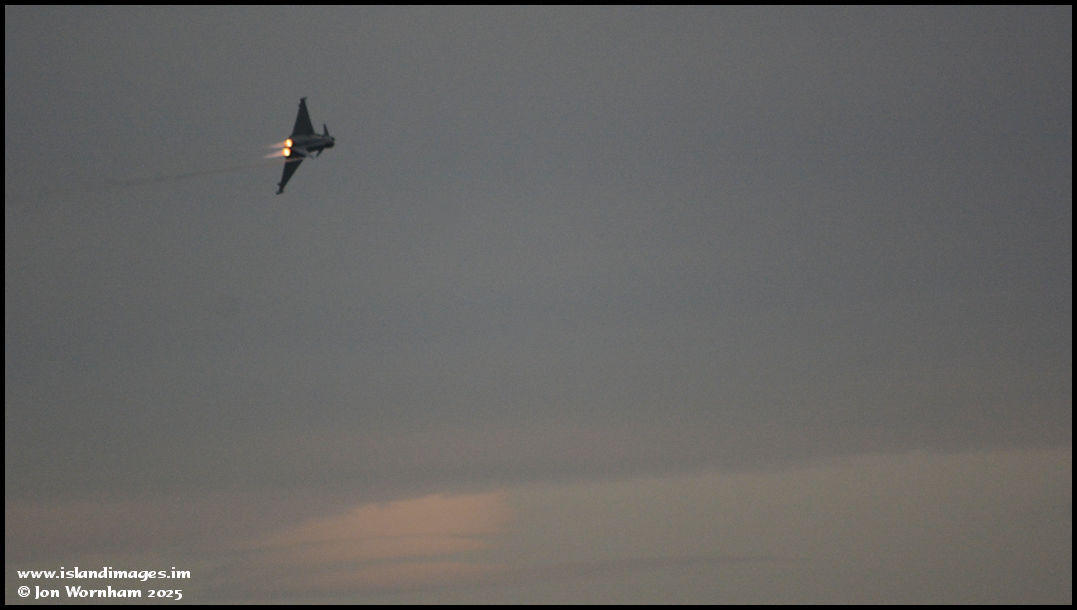 Captured part way through a barrel roll, end on the afterburners are very bright!