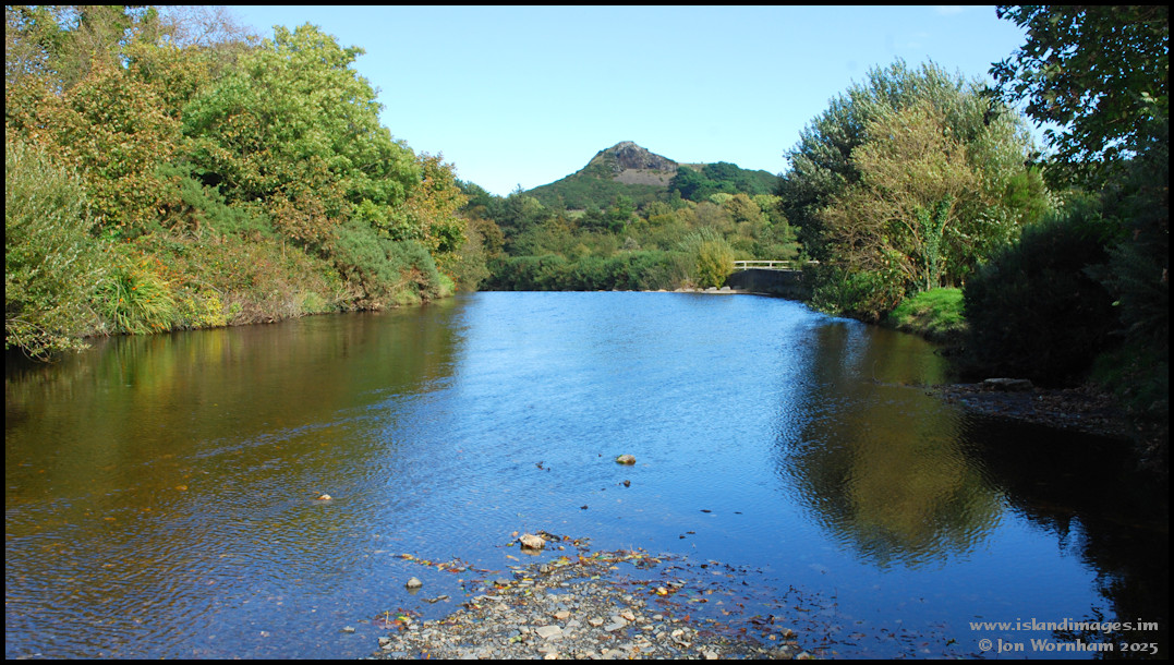 A sunny scene on the Sulby River at the Claddagh on the 22nd of September 2009 with Cronk Sumark beyond.