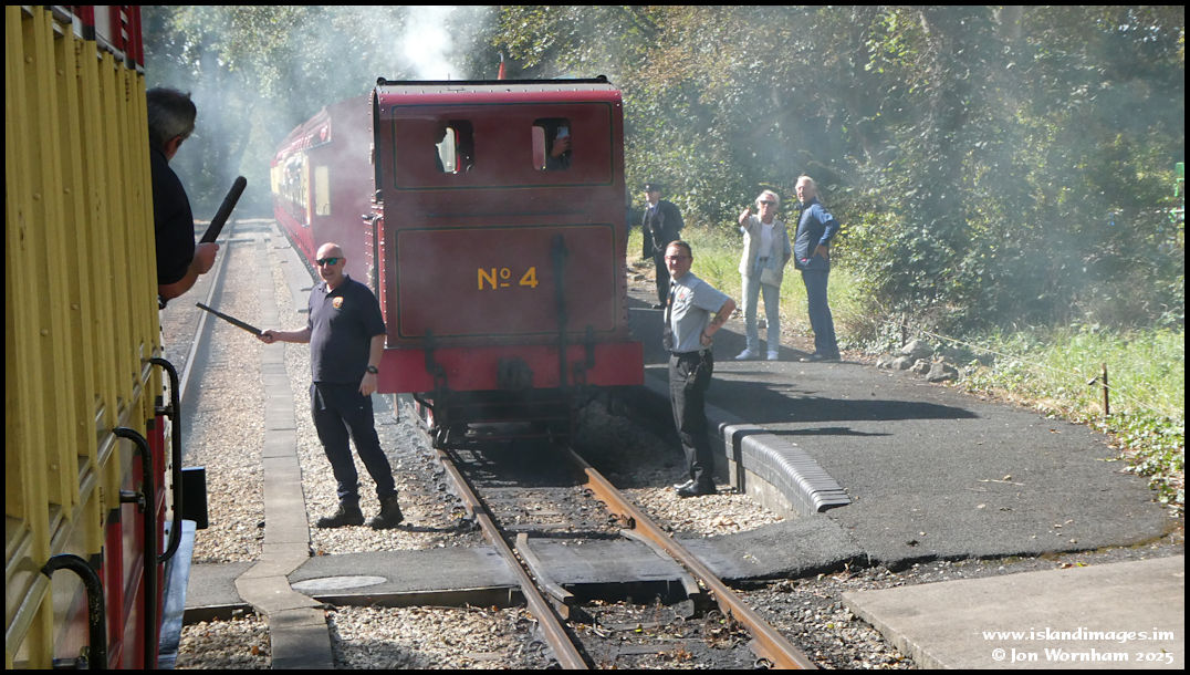 Arriving at Castletown and passing the northbound train wth the drivers exchanging the single line staffs under the watcgful eye of the staion master, our driver no doubt getting a bit of ribbing for being late!