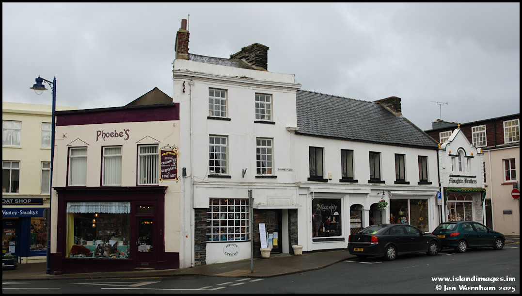 Bourne Place in Ramsey on the 7th of November 2007.  None of the businesses in the row are still there, particularly missed is the amazing delicatessen at the end  run by the Moughtin Brothers.