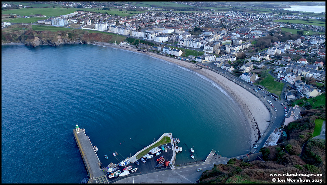 An aerial view of Port Erin with a high tide on the 19th of November 2017.