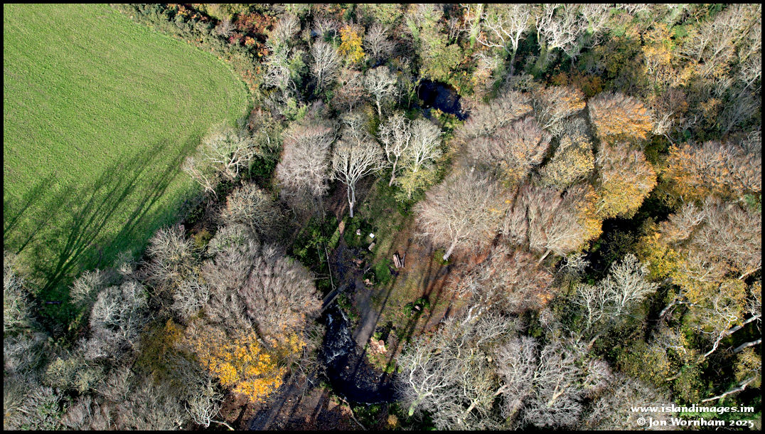 There are two clearings in the glen, this is looking down to the larger one, with the bridge over the river.