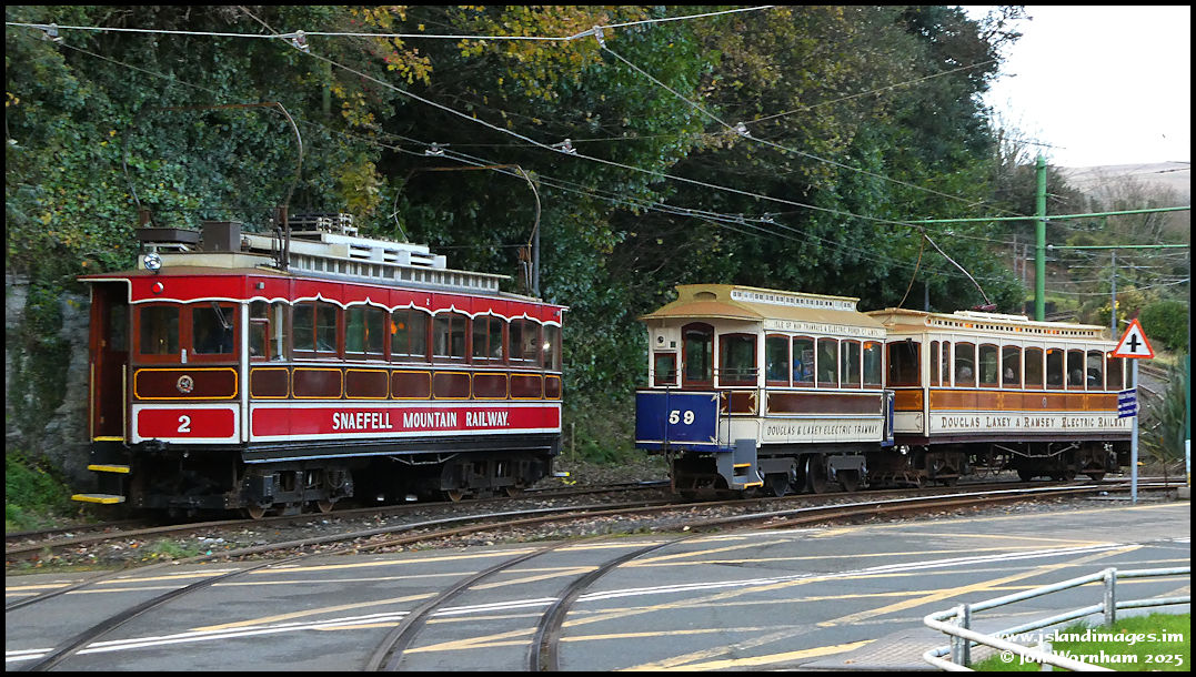The trams about to part ways after crossing the main road.