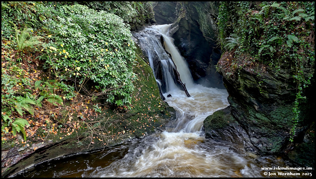 Just the lower section of the waterfall. It proved impossible to climb high enough to include the upper section, which is under the bridge, due to an overarching canopy of tree branches.