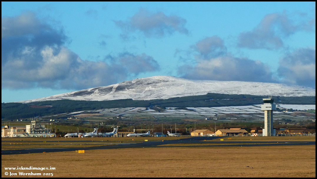 Third Ronaldsway picture in a row! This is looking across the airport from the Derbyhaven side with a snow covered South Barrule behind on the 8th of December 2010, with both old and new control towers in shot.
