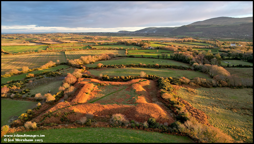 The mysterious English Civil War fort at Kerroogarroo (or Ballachurry), constructed in a remote location in 1640. A low sun angle on the 8th of December 2022 has highligted it unusual shape.