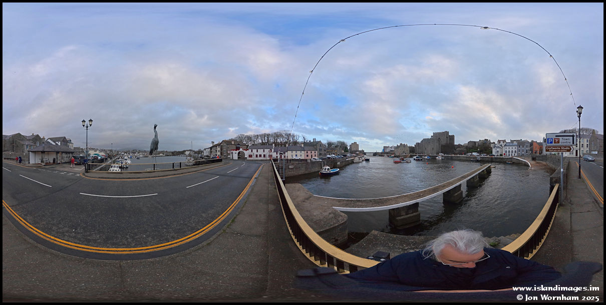 On the Castle Stree road bridge over the harbour, with the giant heron for this panorama!