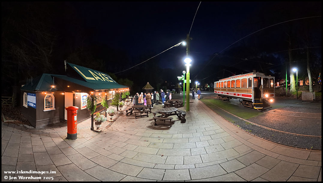 Aroun half an hour after Car No 21 had headed off for the Dhoon Glen, No 22 has arrived from Derby Castle to operate the next service. This is just a 'slice' from the third panorama, giving a very wide angle view.