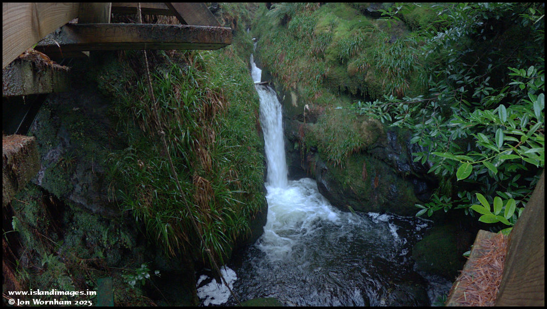 A wide angle shot with the camera supended below the bridge on the upstream side.