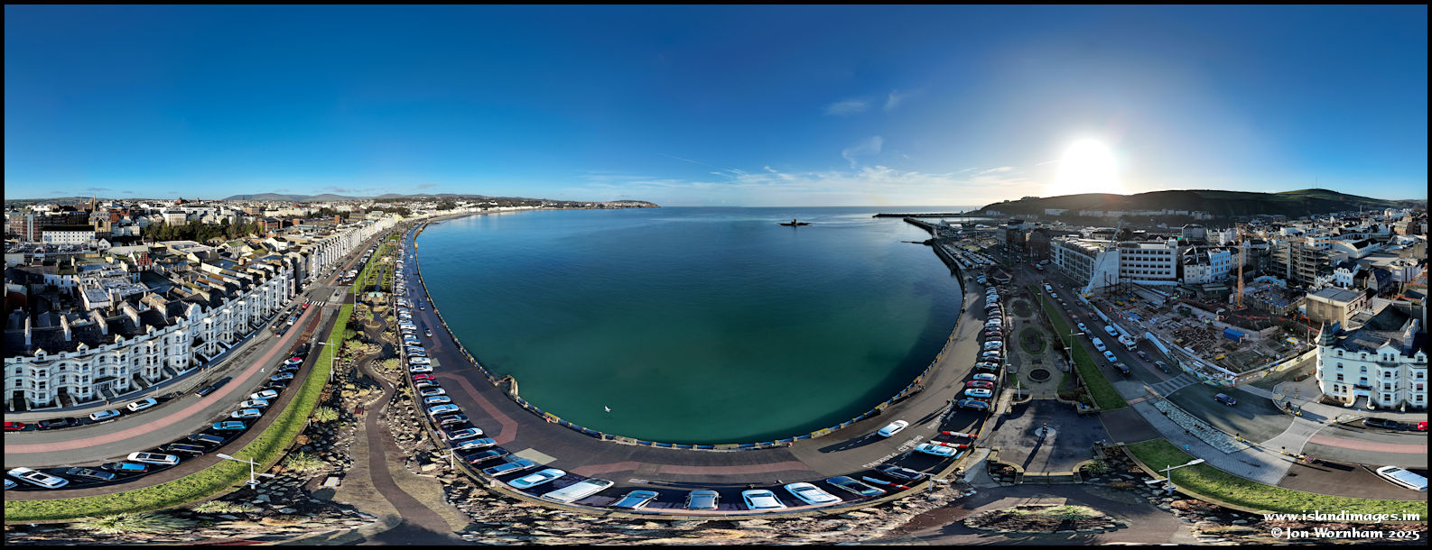 Interactive 360 degree panorama from overhead Loch Promenade gardens.