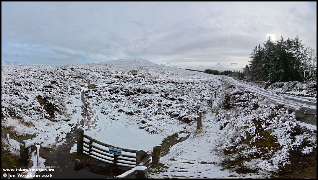 I've moved a short distance from Round Table for this picture, looking up to the summit of South Barrule, with the 'Whiskey Run' track over to the right.