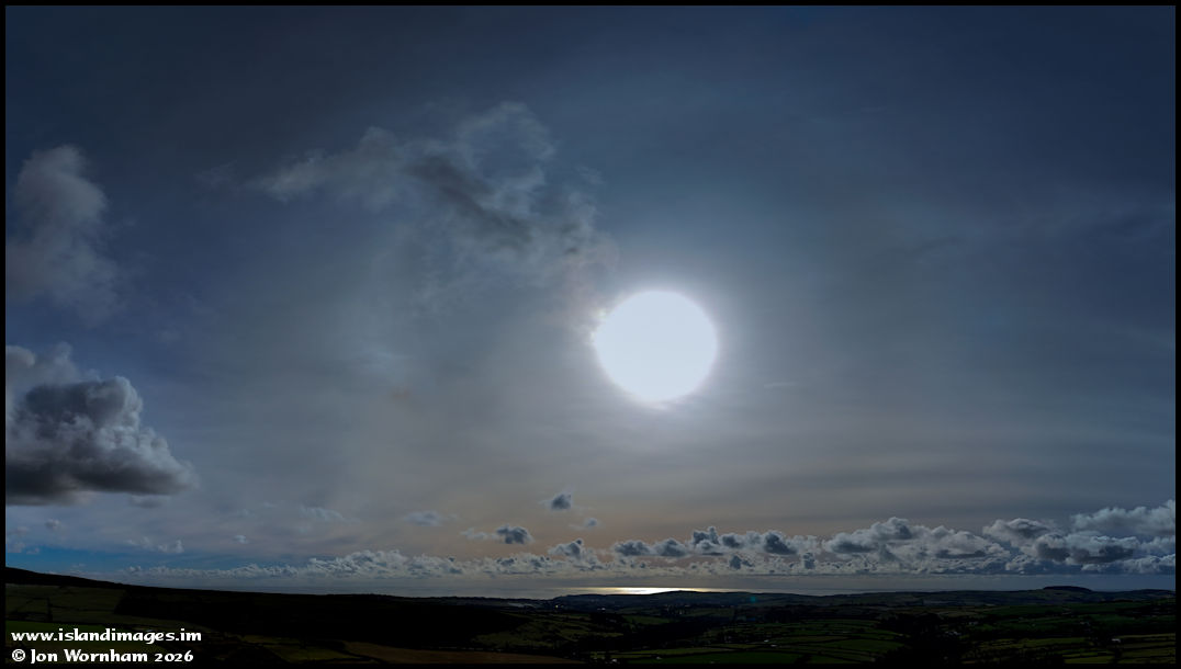 I hadn't noticed this until I was stitching one of the panoramas, but there was a distinct halo around the sun. I re-processed and cropped the panorama to darken the sky around the area of the sun.