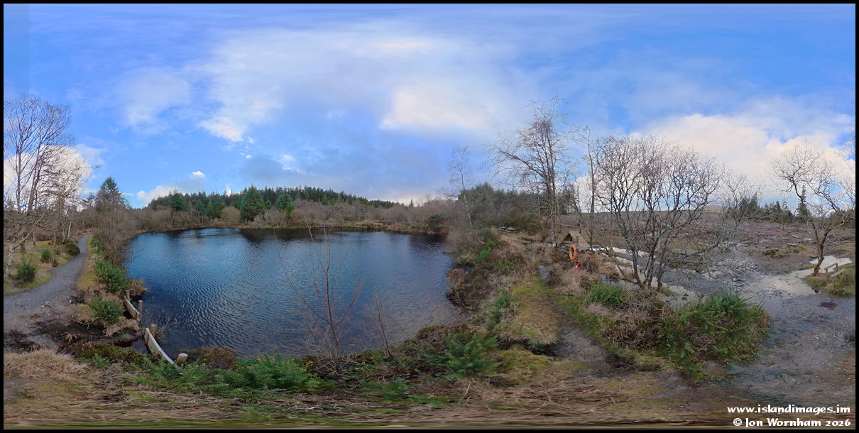 By the artificial lake in Archallagan Plantation, this is the source of both the rivers Dhoo and Neb. The area on the right of this 'flat' image was once a lovely area to walk through, but now just a wasteland after forestry operations.