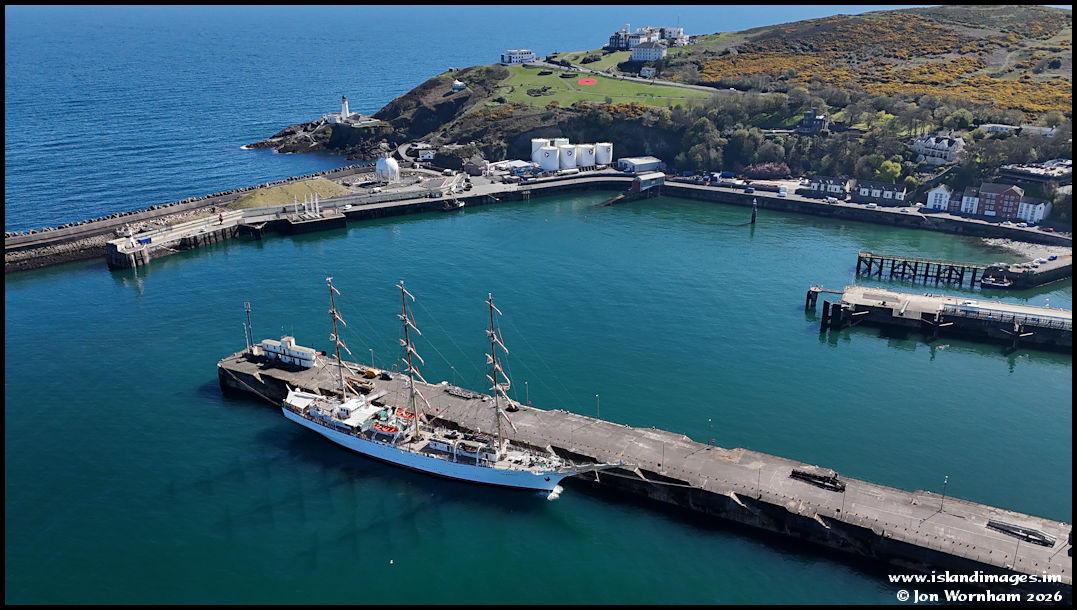 Climbing to a higher altitude to look past the 'Dar Mlodziezy' and across the harbour to Douglas Head.