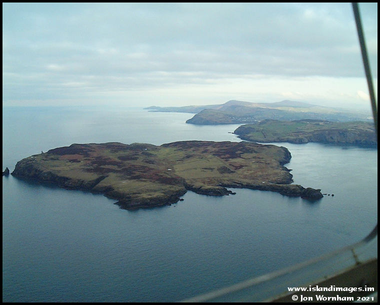 Looking north across the Calf of Man, with Peel Hill in the distance.