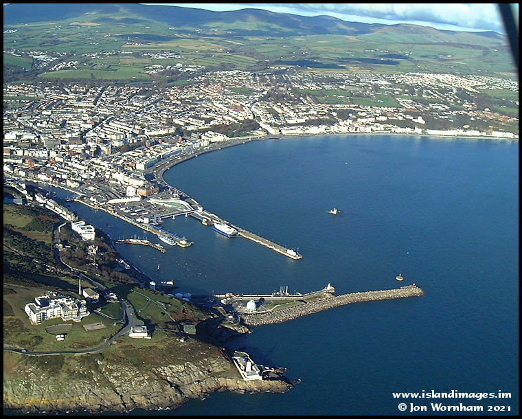Looking across Douglas harbour to the town. The Douglas Head apartments seem to be complete now and the original 'Seacat Isle of Man' is at the Victoria Pier linkspan.