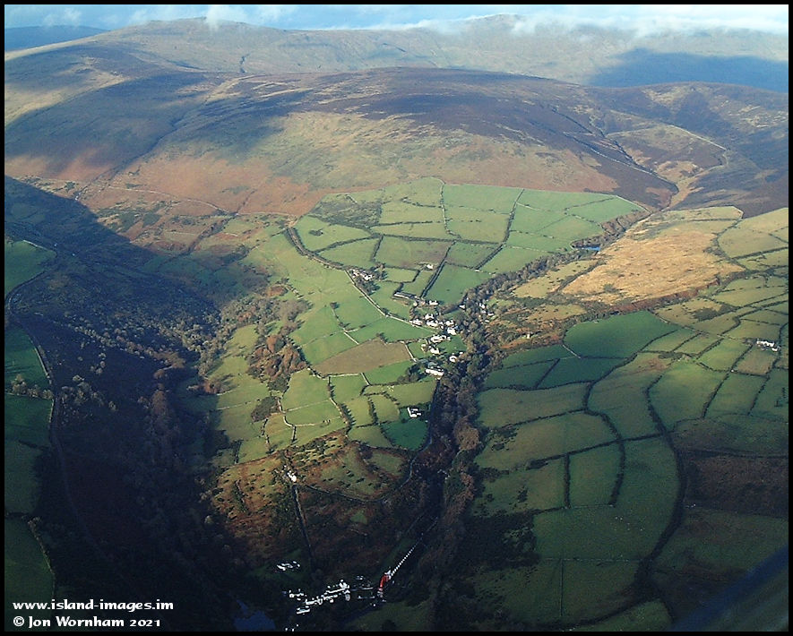 I'm overhead Laxey now and looking past Agneash where the cloud seems to have reduced a bit. You can just see the Laxey Wheel at the bottom of the picture.
