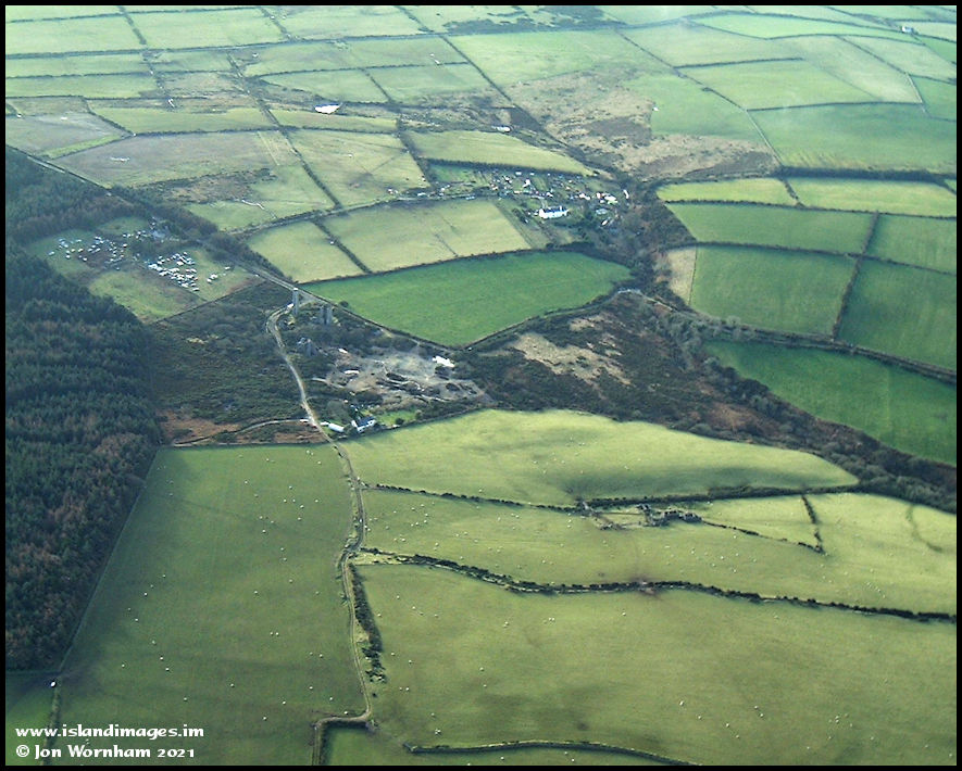 At the north west corner of Archallagan Plantation is the old Cornelly Mine site. To the left is where a collector of old cars used to store his vehicles in some fields, but I think he was told to remove them by the planning department.