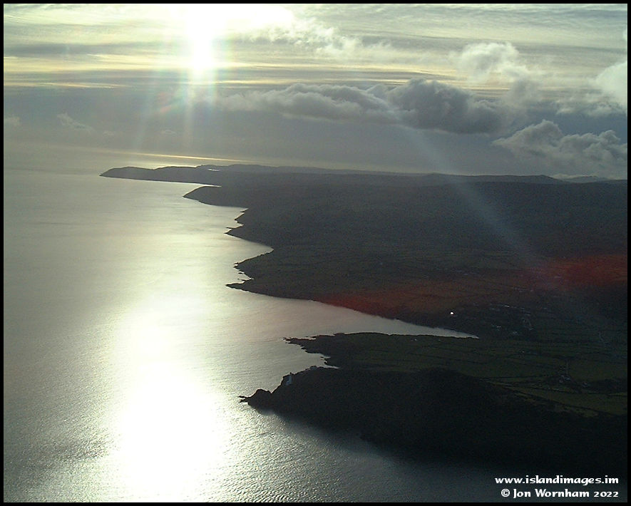 Looking back down the east coast from Maughold Head, straight into the low winter sun.