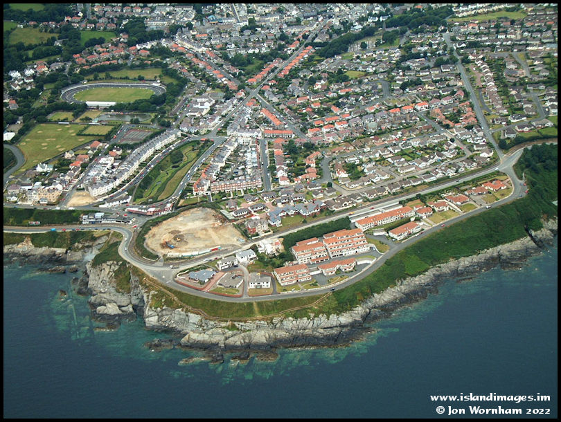Onchan Head, where the former Douglas Bay Hotel has been demolished and the site cleared for the coming Royal Skandia office building. Another hotel has also been demolished just behind Port Jack shops.