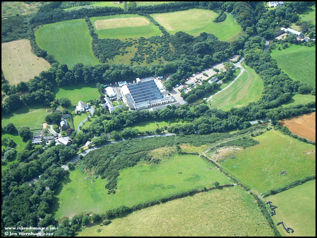 Tynwald Mills, St John's. Once a woolen mill, by this time it had been converted into a retail outlet, although some of the weaving machinery was still used then for demonstrations.