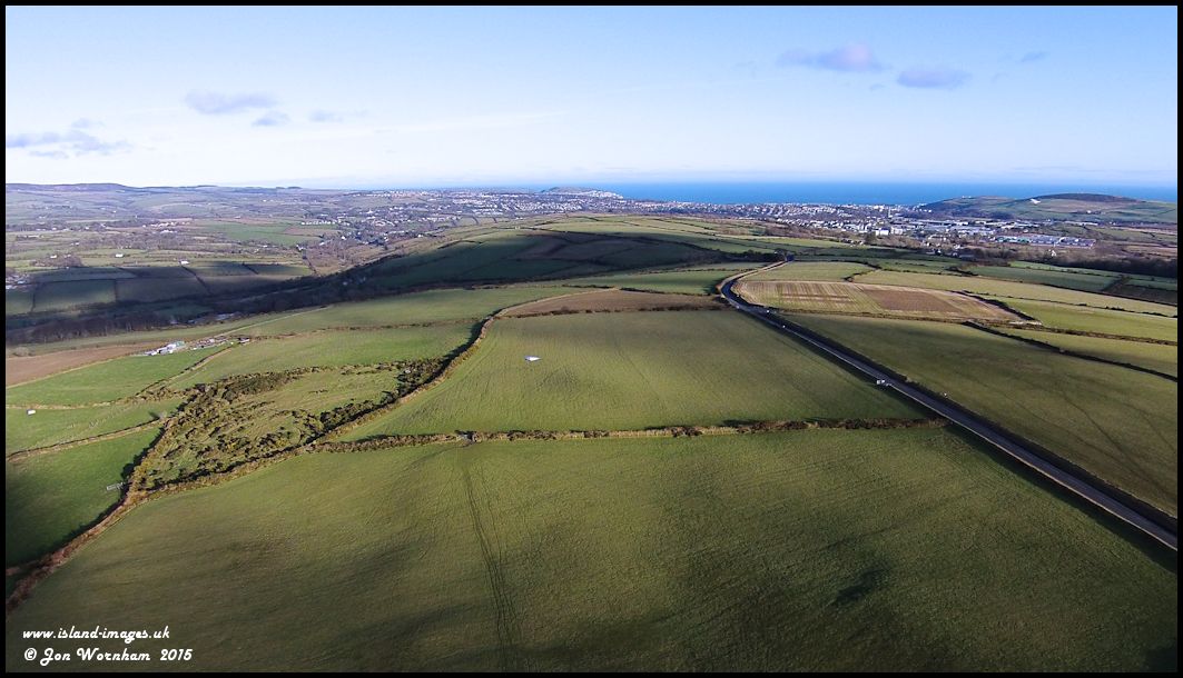 Looking to the east from overhead The Braaid, towards Douglas and Onchan