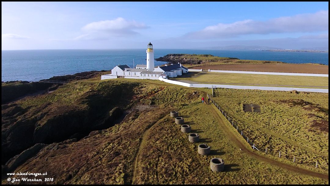 Langness Lighthouse. The circular constructions in the foreground are ground to air gunnery training positions and date from the early Second World War and RAF Ronaldsway
