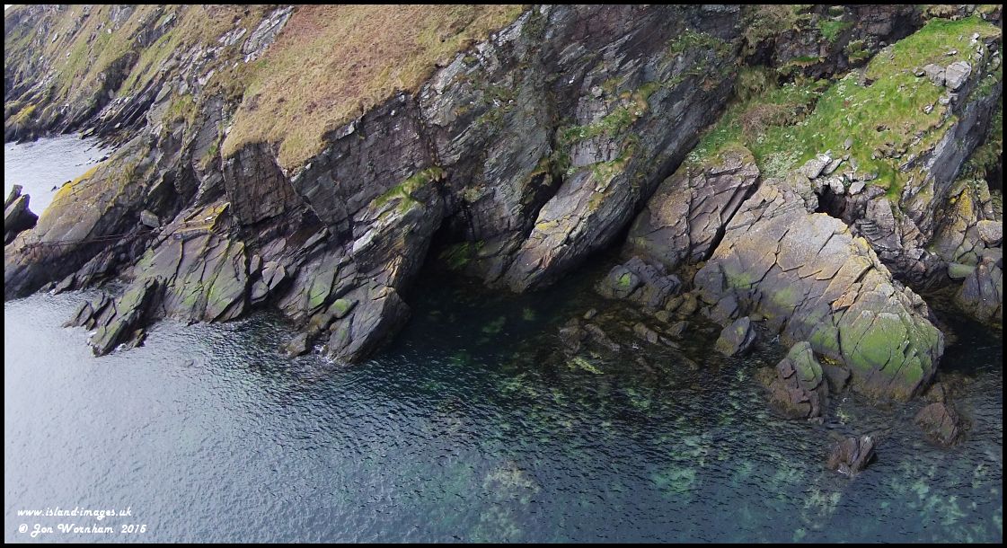 Remains of the Port Soderick southern walkway can be seen if you look closely, most has been washed away by the sea.