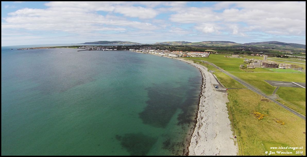 The long stoney beach south of Ronaldsway airport, looking west to Castletown