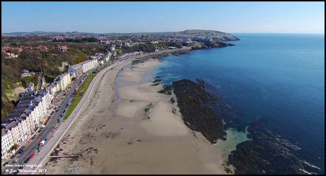 Looking north along the beach at Douglas to Onchan Head and Howstrake
