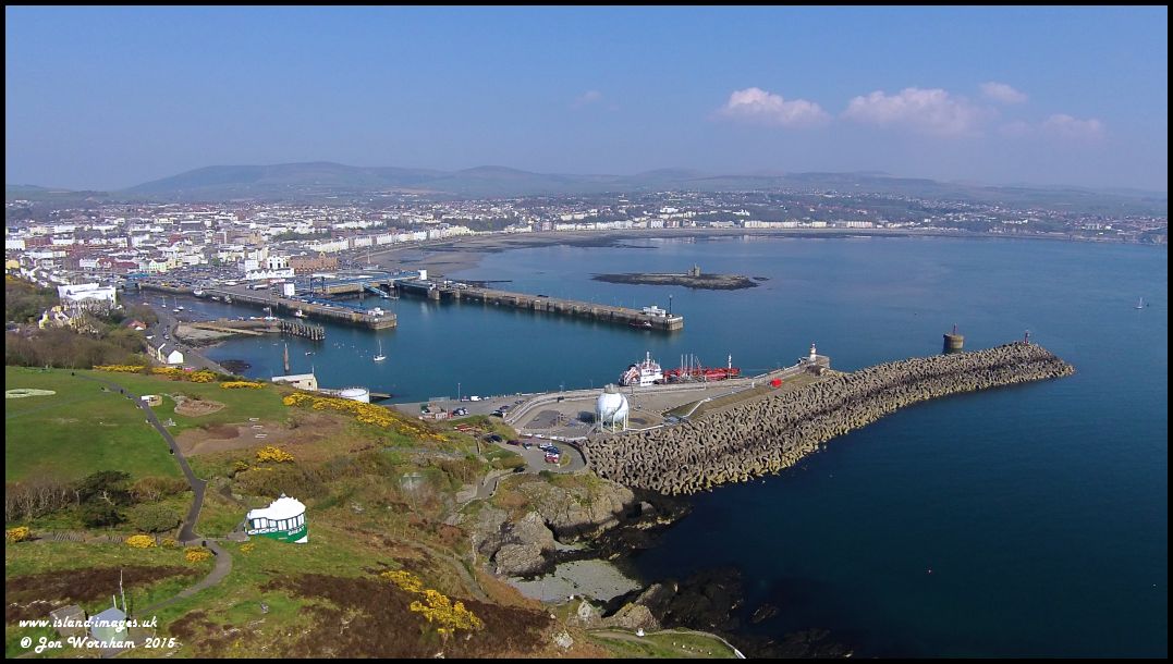 Looking over Douglas Harbour to the town, with the Camera Obscura in the foreground