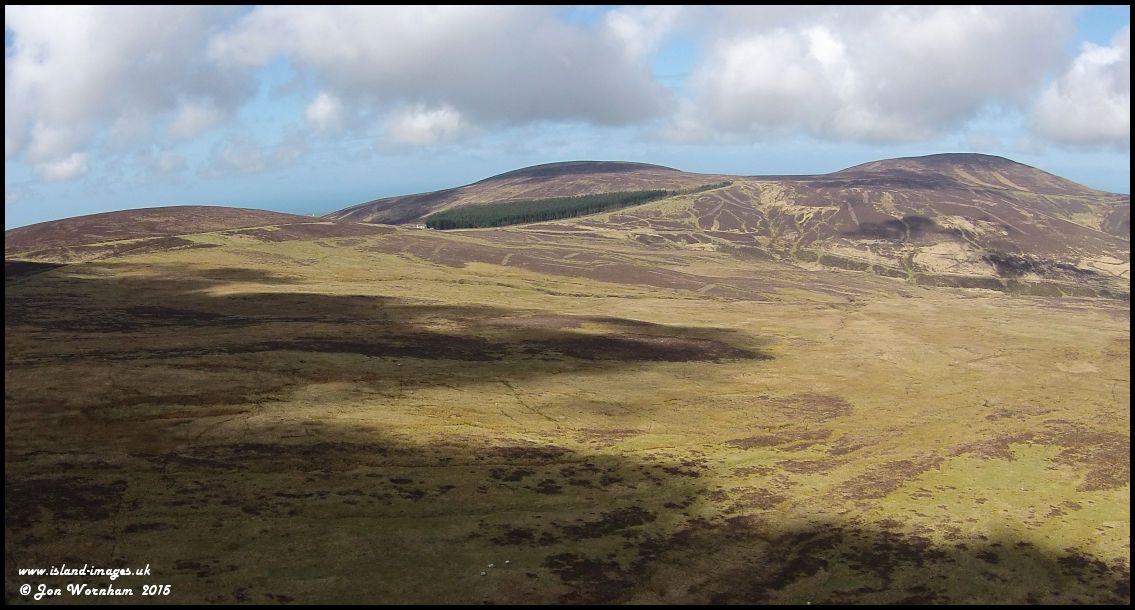Looking across the moorland to Brandywell Cottage with Sartfell and Slieau Freoaghane