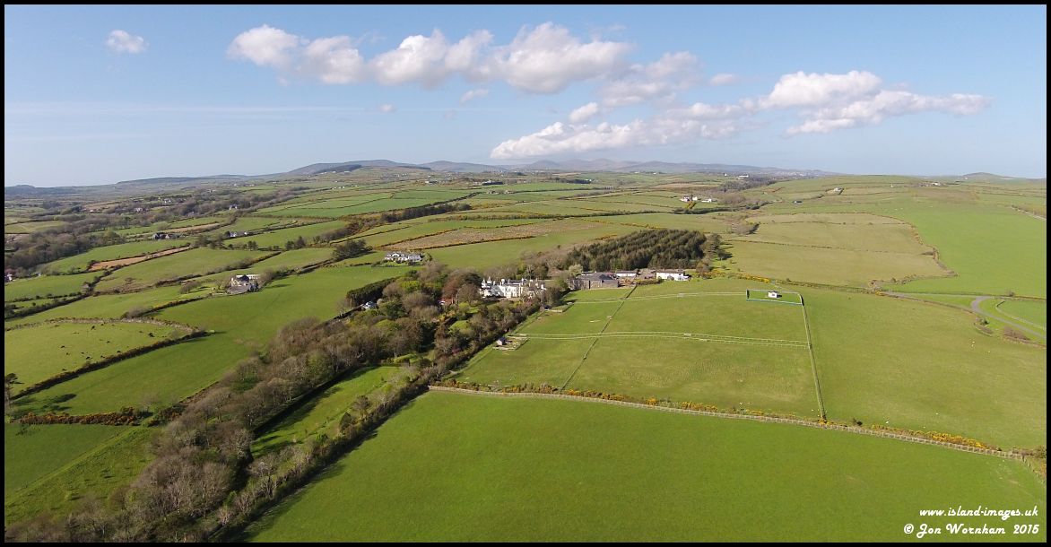 Looking inland over the fields to Arragon House, which was formerly a hotel