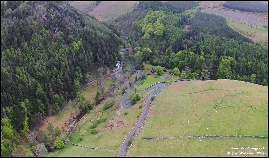 Looking down on the hairpin bends on the Tholt-y-Will road