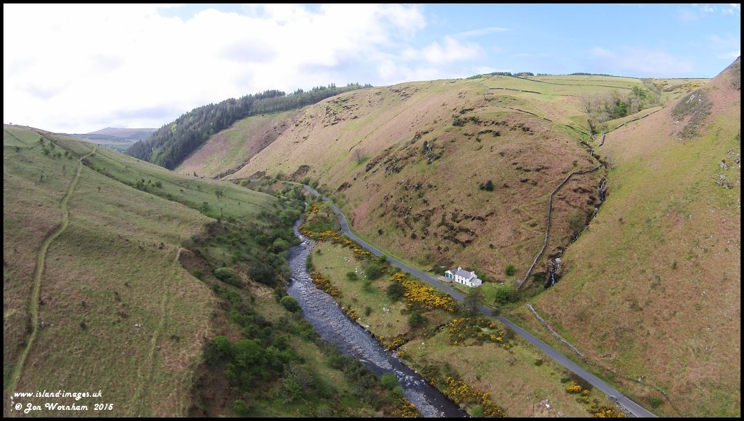 From a higher altitude and Killabrega Farm is coming into view on the hillside above the cottage. Just visible is the steep zig-zag path up the hill from the cottage