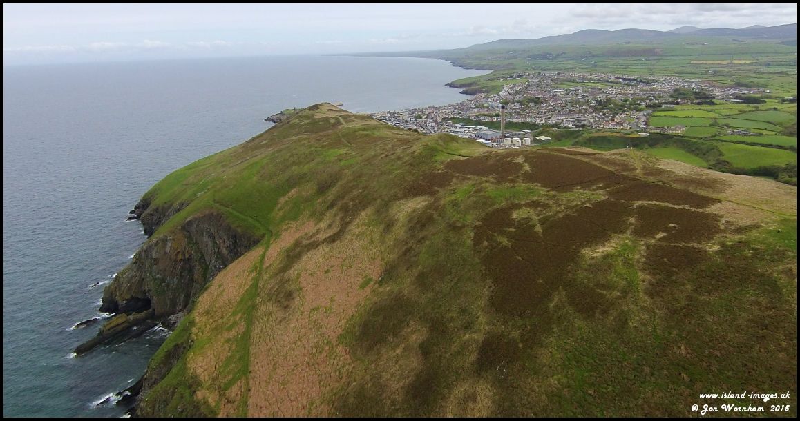 The western edge of Peel Hill, showing the sheer cliffs just below the footpath