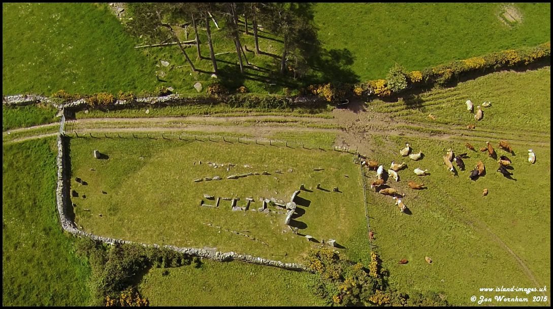 A near vertical view of the Neolithic burial site at Cashtal yn Ard
