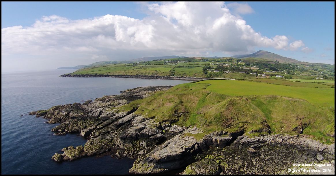Looking to the south over Port Mooar bay, the coast footpath can be seen snaking along