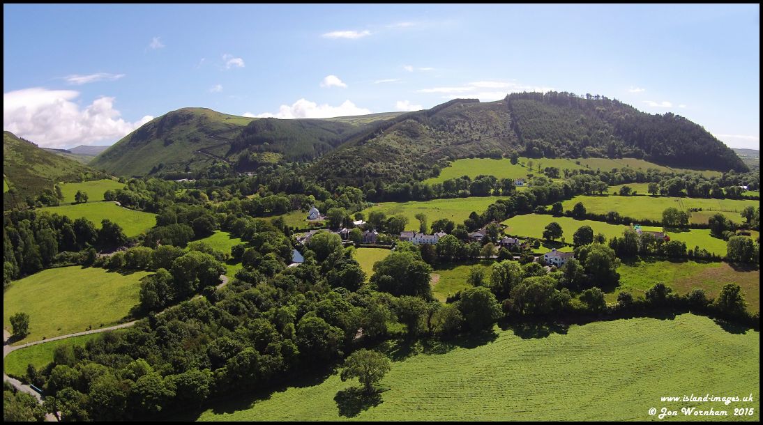 Looking to the south again towards Sulby Glen, he Sulby River can just be seen snaking past the houses