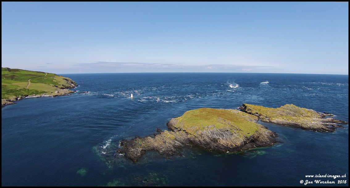 Kitterland and The Sound, note the abrupt change in water condition to the west of the Thousla Rock lighthouse