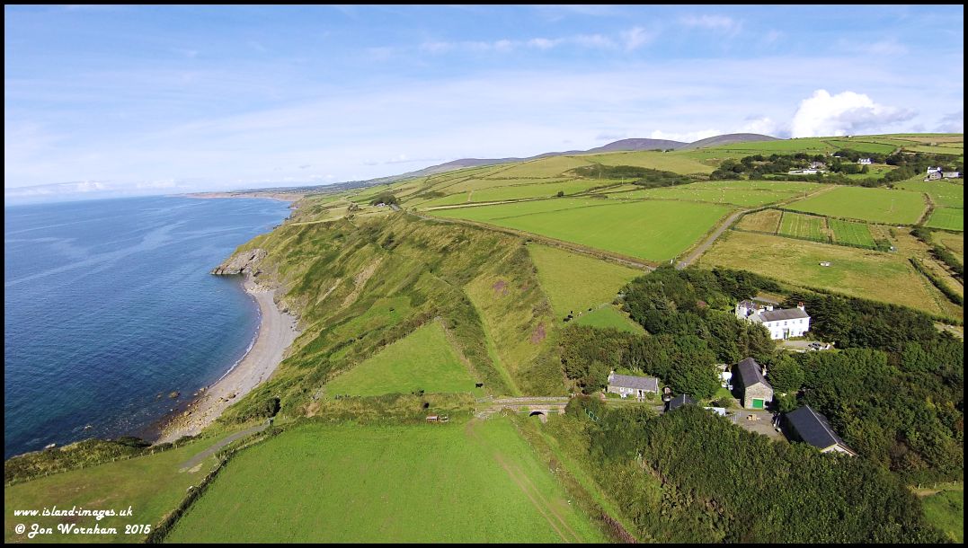 Looking along the line of the old Manx Northern Railway, where it clung rather precariously to the cliff between road level and the beach.