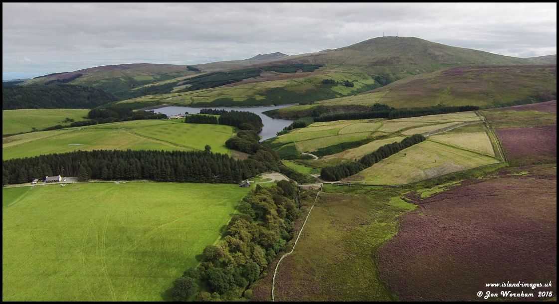 View from overhead Druidale, looking to the Sulby Reservoir and Snaefell