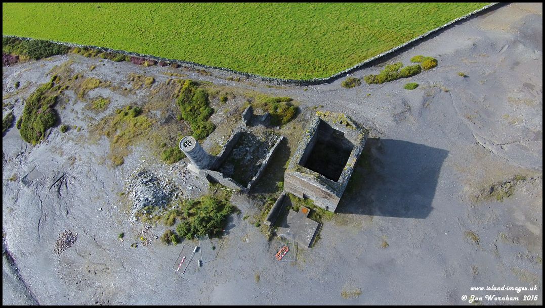 The engine and boiler house at Beckwith's mine, with the recently capped off chimney and pile of bricks where the top section collapsed