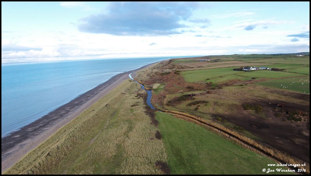 The River Lhen where it passes through the Cronk-y-Bing nature reserve before crossing the stony beach and entering the sea