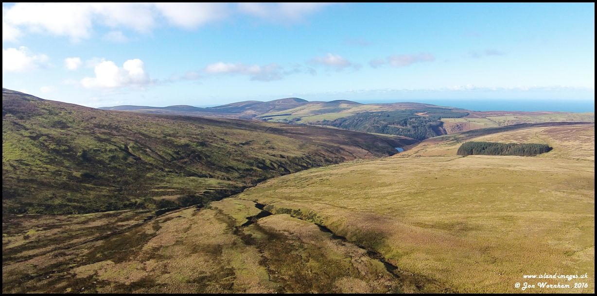 Looking west from Mountain Box towards Sulby Glen, with Bock Eary reservoir just visible