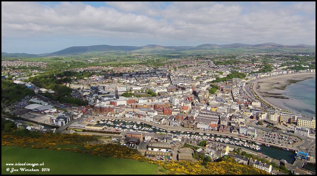 Looking across the central part of Douglas from above the head, with the Marina in the foreground.