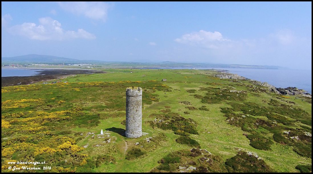 The 'Herring Tower' on Langness peninsula. Constructed in 1811 to provide a landmark feature for fishing boats approaching Derbyhaven and Castletown and later superseeded by the Langness lighthouse